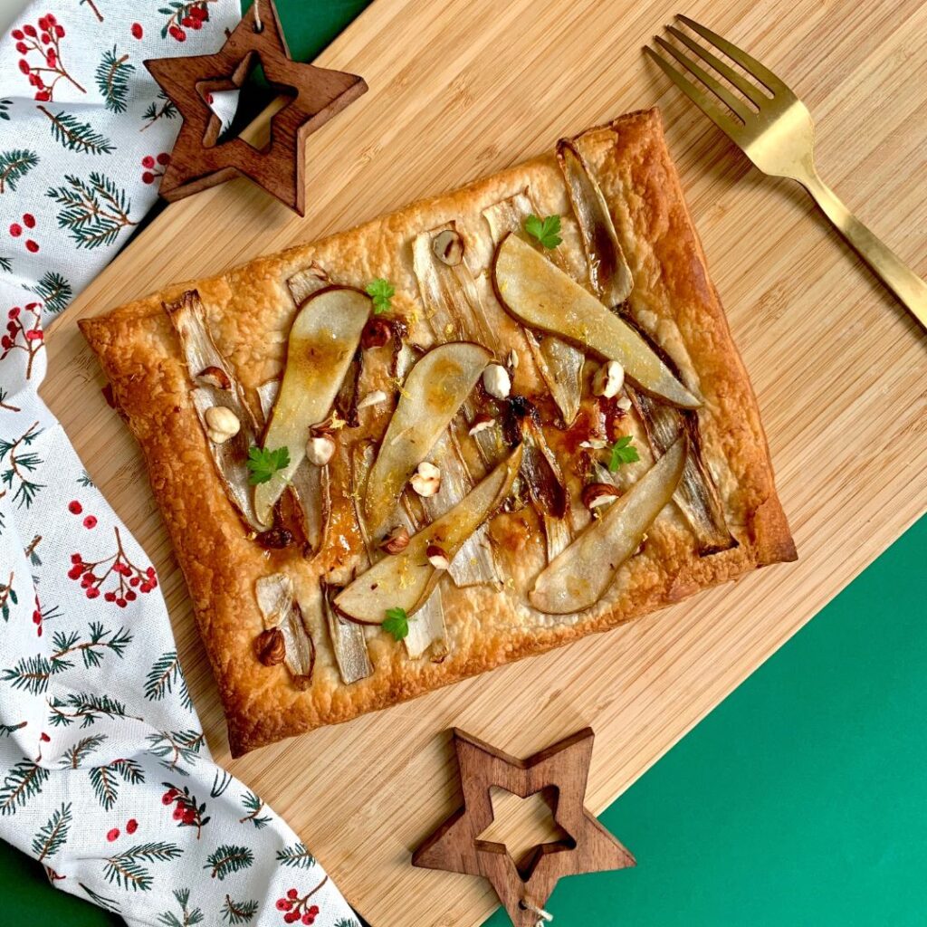 tarte fine aux endives, poires caramélisées & fromage bleu
